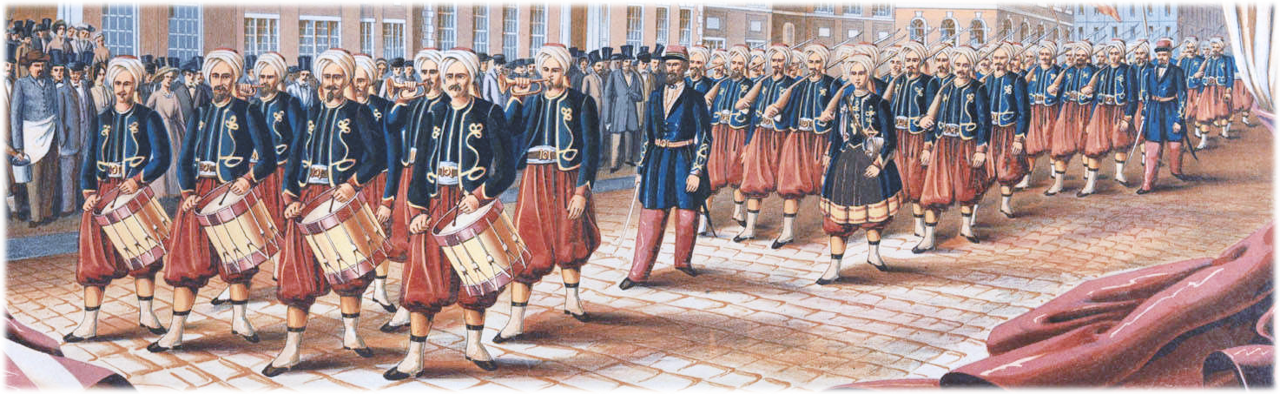 With the fighting in the Crimean War from 1853 to 1856 came worldwide coverage of the conflict, and especially the services of the French Zouaves, Tirailleurs, and Chasseurs a Pied. Newspapers, books, letters, and other forms of media and mass communications were filled with accounts of the colorful French soldiers and their fights at the Alma, Inkerman, Sebastopol, and the Malakoff; and again they were center stage during the Italian (Austro-Sardinian) War in 1859 during the battle of Solferino. As coverage of these soldiers and their battles reached the various corners of the globe local military units began to adopt the dress of the French units in imitation, and the United States was no exception. In his report regarding the Crimean War Captain George B. McClellan of the United States Army, who had been sent to the Crimea as a military observer, would write that "The Zouaves are all French; they are selected from among the old Campaigners, for their fine physique and tried courage, and have certainly proved that they are, what their appearance would indicate, the most reckless, self-reliant, and complete infantry that Europe can produce....With his graceful dress, soldierly bearing, and vigilant attitude, the Zouave at an outpost is the beau ideal of a Soldier...The Zouaves have, combined with all the activity and energy of the others, that solid ensemble, and reckless, dare-devil individuality, which would render them alike formidable, when attacking in mass, or in defending a position in the most desperate hand to hand encounter. Of all the troops that I have ever seen, I should esteem it the greatest honor to assist in defeating the Zouaves." With such reports and articles appearing in newspapers in the United States it is no surprise that in the larger cities of the country there were organized units such as the "Pittsburgh Zouaves" and the "Philadelphia Zouave Corps" of Pennsylvania, and the "Gardes LaFayette" of New York. However in 1857 a young man named Ephraim Elmer Ellsworth happened to meet Charles A. DeVilliers, a French physician who had served in the Crimean War with the French Zouaves & Chasseurs d'Afrique, at a local gymnasium in Chicago, Illinois, where DeVilliers was serving as a fencing instructor, this chance meeting would lead to a new 'craze' in the United States, the "Zouave Craze." Two years after their meeting Ellsworth (now serving as the Major of an Illinois State Militia unit known as the "Rockford Grays") accepted the position as Captain of a company known as the "National Guard Cadets" which had been organized in 1856, but since that time had fallen to such a degree that at the time of his acceptance (1859) the company was on the verge of disbanding. He immediately went to work reorganizing the company, re-naming them the "United States Zouave Cadets: and then starting the work of teaching them a Zouave style of drill that (with the assistance of Charles DeVilliers) he created himself, in addition to this he also adopted a Zouave style of dress of his own design (which bore little resemblance to the French style uniform) for the company. After several months of drilling, training, and improving the overall condition of the company Ellsworth lead his Zouaves to the 7th Annual United States Agricultural Fair in Chicago, Illinois, in September of 1859 where there was taking place a drill competition between the various militia's from across the county, however aside from the Zouaves only the "Highland Guards" of Chicago attended the competition, which then took place in front of a crowd of an estimated 70,000 people, the Zouaves easily won the competition and were declared the National Champions and presented with a stand of colors valued at $500. The title proved somewhat controversial however as other companies from throughout the country felt that the U.S. Agricultural Fair did not properly represent the entire United States, and as only one company had competed against them, that it was invalid. In response to this Ellsworth issued an open challenge in newspapers throughout the country to any militia company in the United States to come to Chicago and compete against them for the title and the colors, however after several months the challenge went unanswered, in May of 1860 the challenge was amended and re-issued stating the Zouave Cadets would pay all of the expenses for any group willing to accept the challenge, however still there were no takers to the challenge. As a result of the failure to receive any response to this challenge it was decided that the Zouave Cadets would launch a 20-city tour of the Northeast and Mid-Atlantic to challenge the local militia's in those areas, as the members agreed that "no efforts in the way of hard and continuous drill, and strictest and most exacting discipline, should be spared to carry out their resolve to defend their colors and save them from capture." Ellsworth and the members of the company raised thousands of dollars to finance the trip, and on July 2nd, 1860, with 50 members of the Zouave Cadets, and accompanied by the Light Guard Band, Ellsworth proceeded with the tour. The tour's first stop was Adrian, Michigan, on July 3rd, from there they went to Detroit (Michigan), Cleveland (Ohio), Niagara Falls (New York), Rochester (New York), Syracuse (New York), Utica (New York), Troy (New York), Albany (New York), West Point (New York) where they preformed their exhibition for Lieutenant General Winfield Scott & Brevet Major William J. Hardee, at New York City on July 14th, and then onto Boston (Massachusetts), Salem (Massachusetts), Philadelphia (Pennsylvania) where they were greeted by the members of the "Philadelphia Zouave Corps," at Baltimore, Maryland, at Washington, D.C., on August 5th, where they drilled on the White Hose lawn for President James Buchanan, at Pittsburgh (Pennsylvania), Cincinnati (Ohio), at St. Louis (Missouri), and the final stop at Springfield (Illinois). They arrived back in Chicago 