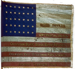 On December 20th, embarked on the steamer "Northerner" with the forces under General William T. Sherman, for Vicksburg, Mississippi. Reached Milliken's Bend on December 25th, and the following day proceeded up the Yazoo River, and participated in the attack upon Chickasaw Bluffs, from the 26th of December to January 2nd, 1863. On January 2nd, after the troops had re-embarked, the Regiment while on boat was under a heavy fire from a rebel line. From here proceeded with the force under General McClernand to Arkansas Post, Arkansas, and took part in the two days fight at that place on January 10th and 11th, 1863, which resulted in the capture of the fort and some 6,000 prisoners. On January 23rd, returned to Young's Point, Louisiana, where it assisted in the digging of the famous "canal," and remained until March 9th, when it moved to Milliken's Bend and went into camp. The Regiment was now Brigaded with the Forty-ninth and Sixty-ninth Indiana, One Hundred and Twentieth Ohio, Seventh Kentucky, First Wisconsin and Seventh Michigan Batteries and part of the Third Illinois Cavalry, as the First Brigade, General T.T. Garrard commanding, Ninth Division, General P.J. Osterhaus, and Thirteenth Army Corps, General John A. McClernand. On April 2nd, 1863, moved out in the expedition against Vicksburg under General Grant, crossed the Mississippi River at Bruinsburg on April 30th, and took part in the battle of Thompson's Hill (Port Gibson) on May 1st, at Champion Hill on May 16th, at Black River Bridge on May 17th, and in the assault upon Vicksburg from May 19th to 23rd; in the former two and the latter two suffering severely in killed and wounded; in the battle of Black River Bridge, a whole rebel regiment was captured by, and surrendered to Company D, commanded by Captain Brown. On May 24th, moved with General Osterhaus' Division to the Black River Bridge, and there remained until the surrender of Vicksburg, holding the rear against rebel General Joseph E. Johnston's forces, having frequent skirmishes with them. About June 10th, a Battalion of the Regiment was mounted by order of General Grant. On July 6th, started with force under General Sherman to Jackson, Mississippi, and took part in the fighting and siege from the 10th to the 17th, and from the 17th to the 20th. The mounted portion of the Regiment went on a raid to Brookhaven, a distance of 60 miles, and back, having frequent skirmishes, tore up the railroad and burned the rolling stock and depot buildings. On July 22nd, started for Vicksburg, where it arrived on July 25th, and went into camp on the flats below the city. While here the Regiment was dismounted and its horses turned over to the Quartermaster's Department, and the Regiment with the Thirteenth Army Corps was turned over to the Department of the Gulf. On August 8th, left by boat for Port Hudson, where it went into camp the next day. Remained there until August 15th. Shipped for Carrollton, Louisiana, and encamped there on the 16th. On September 4th joined in a grand review of the 20,000 troops, by General Grant and Banks. On September 5th, crossed the river to Algiers, on the 6th, took cars for Bayou Boeuf, where arrived the morning of the 7th.