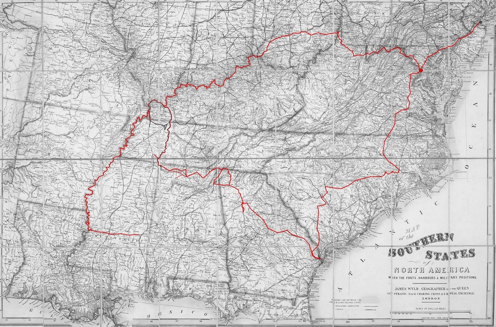 The above map shows (in red) the movements of the Seventeenth (17th) New York Veteran Volunteer Infantry Regiment from its organization in June 1863 to its mustering out in July 1865.
