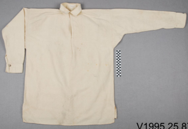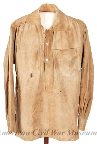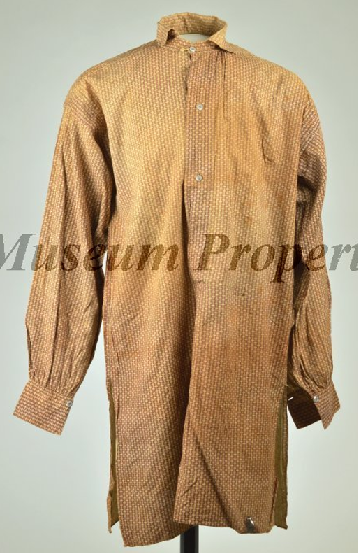 The Military issue shirt at the start of the war was described as being gray, knit and flannel, however, later shirts were issued in unbleached muslin. Despite military shirts being issued, civilian shirts were always popular and were obtained by soldiers either from home, purchased from the local sutler, or obtained in other fashions. The came in a wide variety of patterns, colors, and materials.
