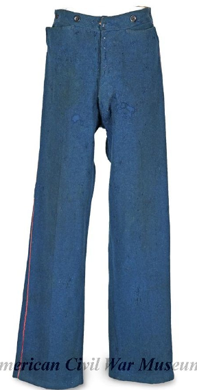 A pair of Sky-Blue Infantry Trousers is recommended, as these will be useable for both a Confederate & Federal Impression and save the initial cost of having to buy two (2) pairs of pants.