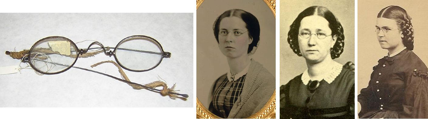 Glasses of Rebecca Warren of White County, ARK (ACW Museum) | Alice Jane Litton (Bancroft Library) | Unknown (Pinterest) | Unknown (Pinterest) |