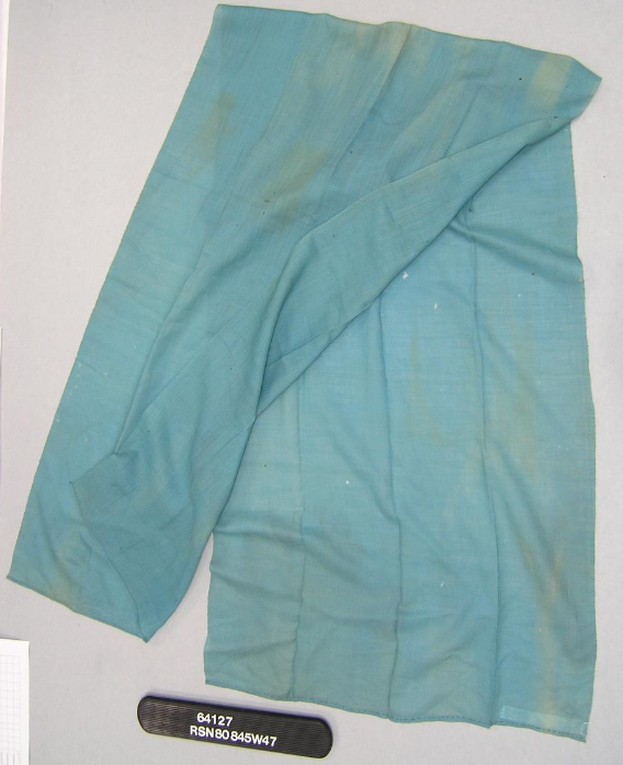 A sky-blue sash was worn around the wait (and over the vest), which measured between 24" x 76" and 22" x 83".